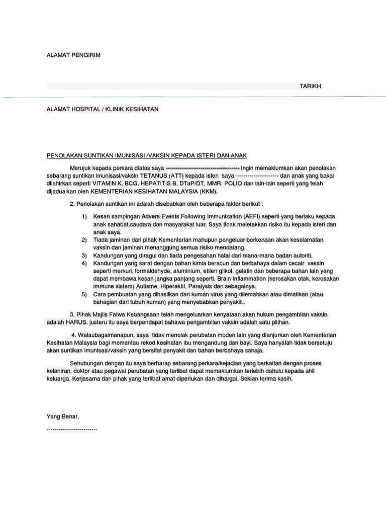 Surat Penolakan Vaksin Att Dan Bayi Pdf