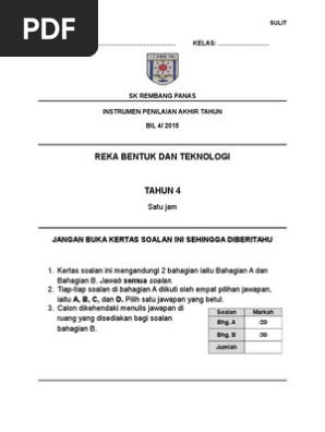Soalan Peperiksaan Akhir Tahun 2019 Tahun 6 Reka Bentuk Dan Teknologi